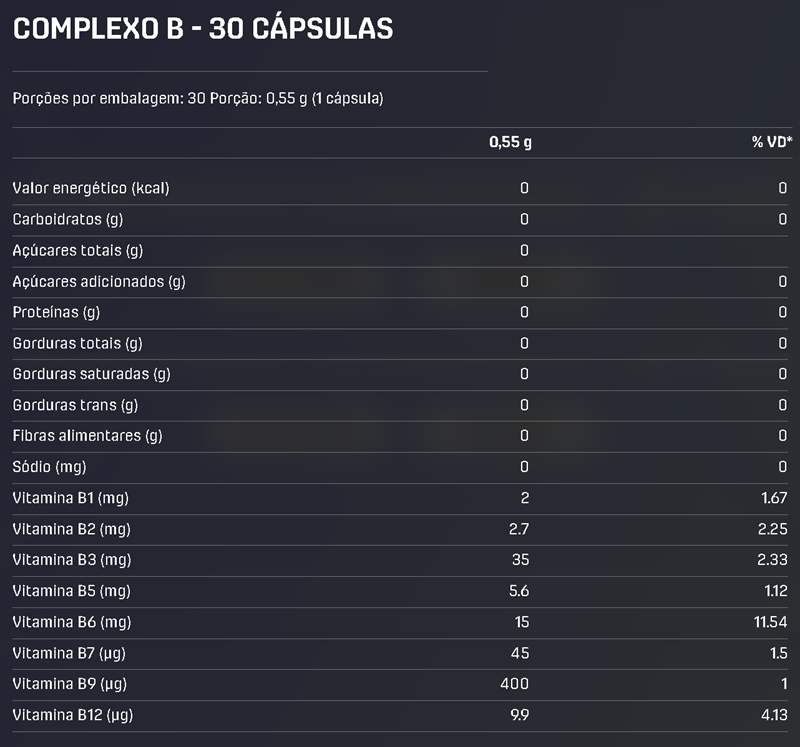 8 vitaminas do complexo B em suas formas ativas