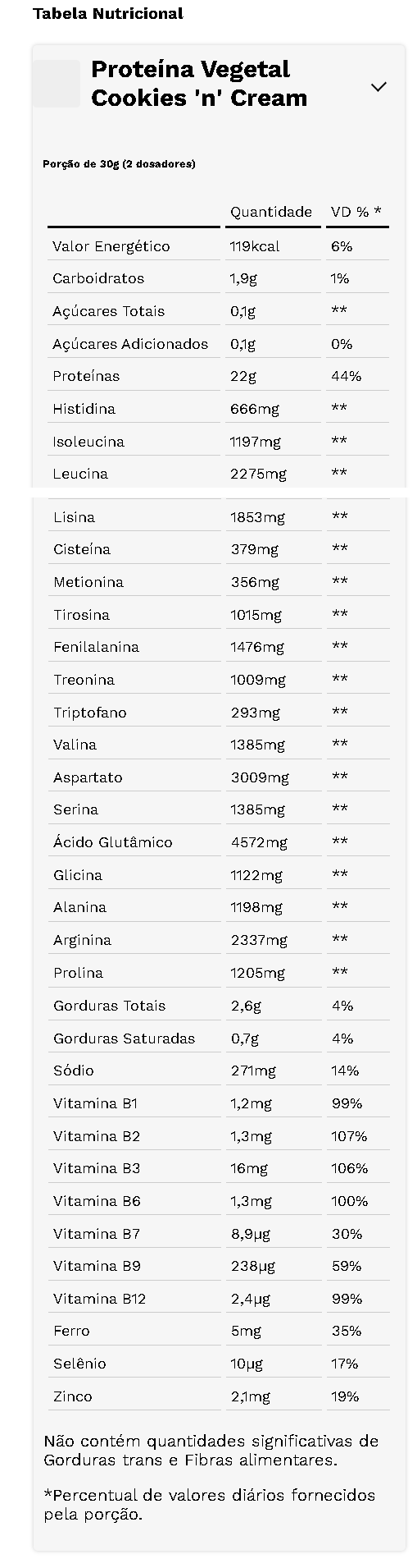 PROTEÍNA VEGETAL COOKIES ‘N CREAM é uma opção perfeita para quem busca uma proteína vegetal com textura e sabor incrível, sem gosto residual.