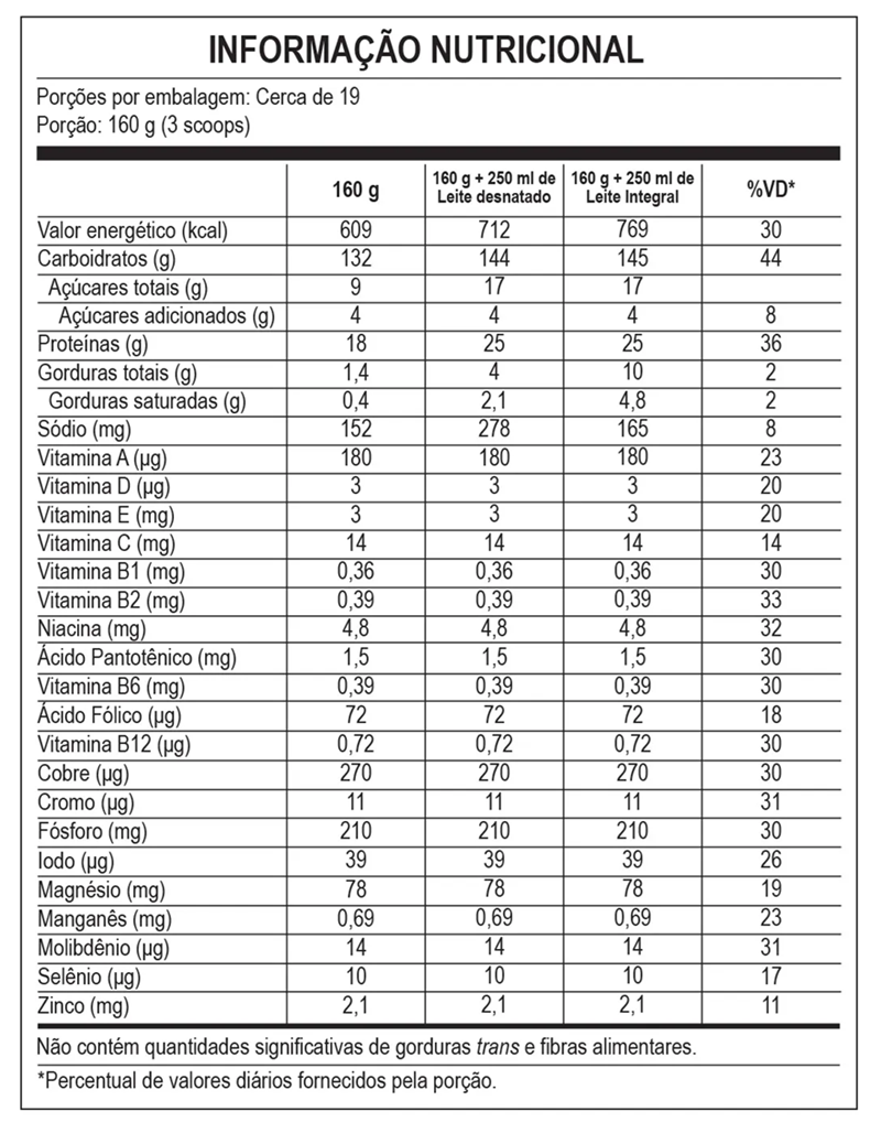 Este produto não é um medicamento. Não exceder a recomendação diária de consumo indicada na embalagem. Manter fora do alcance de crianças. Contém lactose e derivados do leite. Consulte um nutricionista para ajustes personalizados.