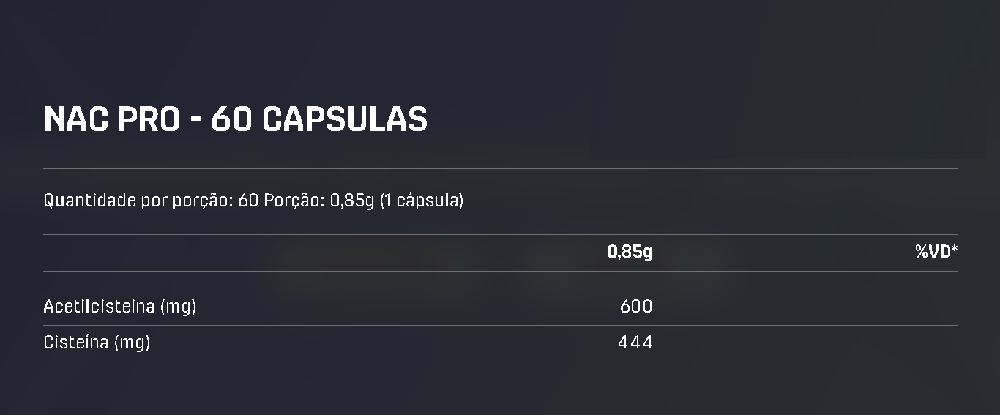 Suplemento de N-acetil L-cisteína (NAC) 100% pura. Essencial para a produção de glutationa, um dos principais antioxidantes do corpo para promover saúde celular e o equilíbrio geral do organismo.